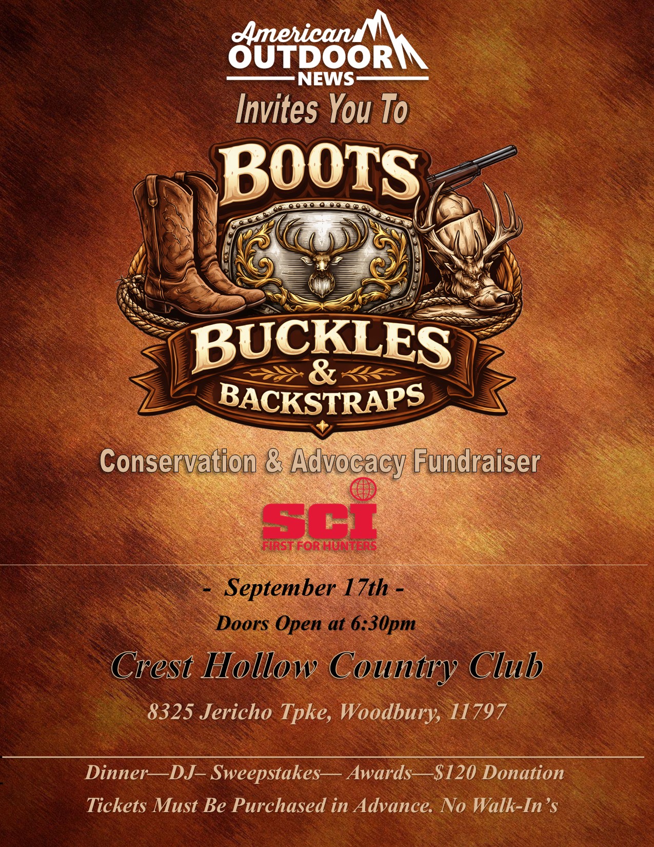 Hosted by American Outdoor News in support of Safari Club International, the Boots, Buckles & Backstraps Fundraising Banquet is set to be one of the premier outdoor gatherings of the year on Long Island. This signature event brings together hunters, anglers, conservationists, industry partners, and community members for an unforgettable evening rooted in tradition, storytelling, and purpose.